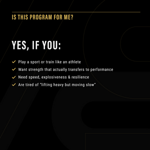 Entraînez-vous comme un athlète. Bougez vite. Frappez fort. Explosez à la demande.Athletic Performance est un système d’entraînement haute performance de 6 semaines conçu pour développer l’explosivité, la vitesse, la production de force et une puissance athlétique résiliente — sans exercices aléatoires ni volume inutile.Ce n’est pas du bodybuilding.C’est un entraînement orienté performance, pensé pour transférer la force du gym vers le terrain, le court ou la glace.*Attention : programme en anglais seulement