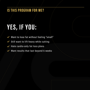 This is not random circuits or endless cardio.It’s strength-driven fat loss, engineered to keep your metabolism high and your physique hard.